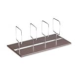 (More customer reviews)My daughter was looking for a way to keep her big textbooks from falling over on the shelf, and so I sent this to her, and it works really well. It doesn't look very pretty in the picture, but it virtually disappears once books are placed on it. The dividers are movable or removable to accomodate any size books, but will not slide if books lean on them. It's not too wide to sit on almost any shelf, and it's easy to store away when it's not in use. Simple but innovative way to store books.