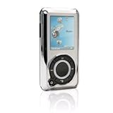 This chromed polycarbonate hardshell case has been polished to a mirror finish. The faceplate above the control wheel is a smooth unbroken expanse of mirror -- until the Sansa screen lights up and is revealed as if by magic. The case back is a matte black rubberized finish that perfectly complements the chrome face and provides a comfortable, sure grip.