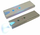 An advanced super micro-LED light and laser pointer with an ultra-thin laser diode and dual, high-intensity LEDs and membrane switches. Stylish and modern with durable chrome metal trim and compact design, this version of our tiny card has glowing inner lights and an impact resistant case, with an easy-to-open battery compartment. Packed in durable, stitched leatherette slip case. Batteries contained in equipment