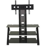 Mount a flat-panel plasma or LCD television in style on this attractive, sturdy TV stand from the innovative minds at Z-Line Designs. Designed for 60-inch screens or smaller, the TV stand\'s integrated mount sustains televisions with up to a 150-pound weight capacity. The TV stand features a strong metal frame with black powder coat finish. Users can adjust the angle of the screen for optimum viewing with the stand\'s swivel mount. For holding DVD/BluRay players, video game systems, stereo, and more, the TV stand provides three shelves. The shelves\' open air design allows air to circulate around the electronic components to increase safety. Crafted in 8mm and 6mm black tempered safety glass, chrome cylinder supports endow the shelves with extra stability. Installed slots in the TV stand enable tidy cable management. For home assembly, the TV stand comes equipped with a universal hardware mounting kit and detailed instructions. The user can mount the screen at varying heights to best meet their personal home entertainment needs. Made in China, this item is covered by a limited lifetime warranty. The assembled TV stand measures 44 inches wide by 21-1/4 inches deep by 50 inches high and weighs 101-3/4 pounds.